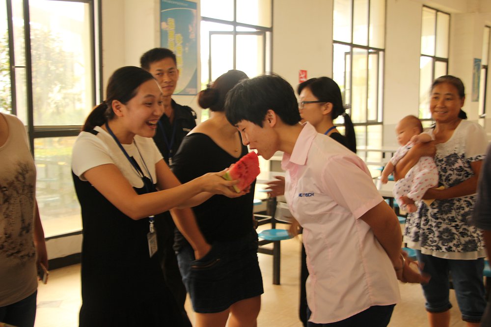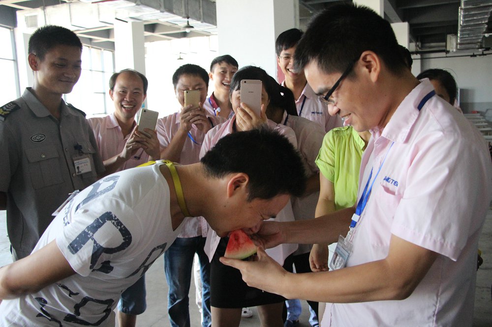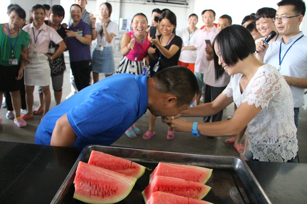 为不影响员工生产,特将比赛时间定为中午12:40,在广大员工饭后消食之余,来场饱腹盛宴。本次大赛规则与以往不同,为考验同事之间的默契度,来了场温馨浪漫的“你喂,我吃”,以小组为单位,每组2人,一人负责喂瓜,一人负责吃瓜,是不是想想就觉得现场罗曼蒂克感爆棚呢?最终成绩最佳的一组将获得“最佳组合”荣誉称号,同时还有礼品颁发。当然,没有获得荣誉称号的小组,每组都能获得一个大西瓜,抱回去与同事们分享喜悦。