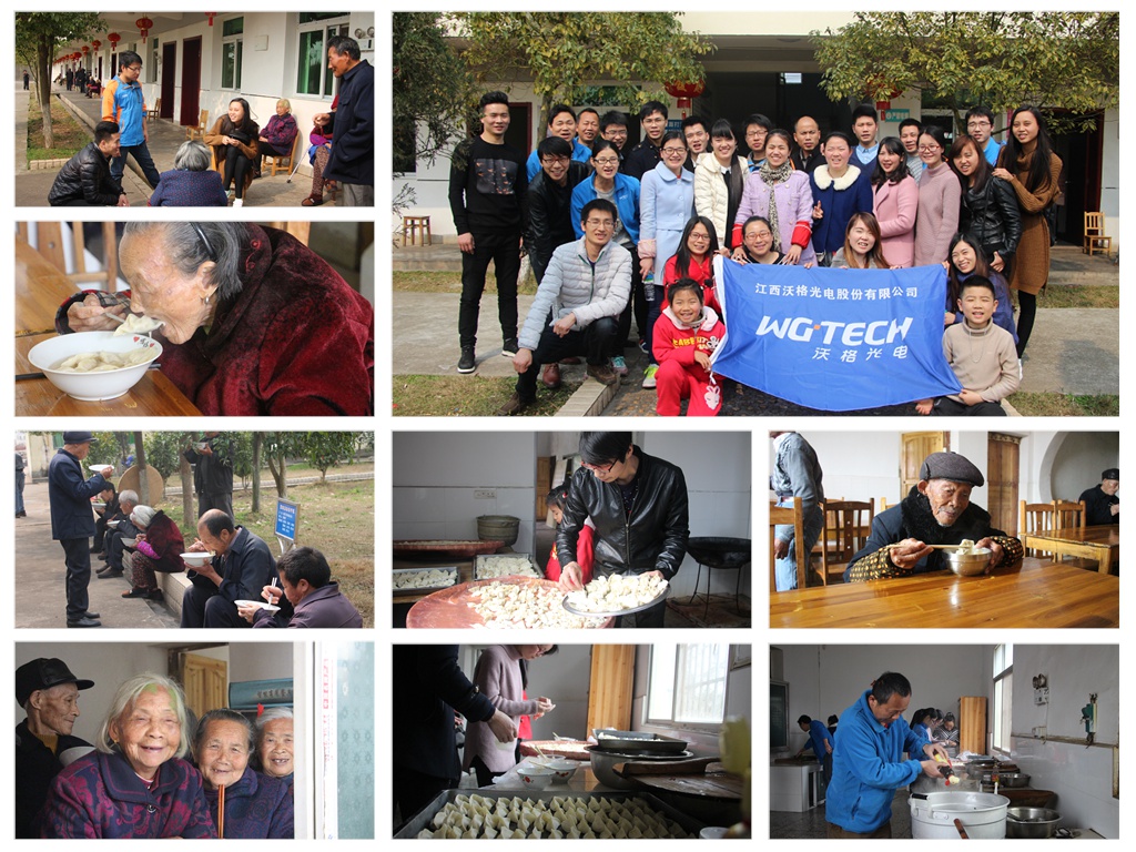 一大早,沃格光电党员与公司员工早早就来到敬老院,提前做好了馅、和好了面,沃格光电党员与公司员工们分工明确,你切白菜,我包馅,你包饺子,我拉家常。我们陪老人们坐在太阳下晒着太阳、聊着家常,我们帮老人们打扫卫生,修剪指甲,我们为老人送点心、剥水果、包饺子,整个敬老院里笑声不断,其乐融融,一个多小时后包好了饺子。当把热腾腾的饺子端到老人面前时,老人们开心地笑了。据敬老院工作人员介绍,这里住的老人都是当地人,由于儿女工作繁忙,没有时间陪老人尽享天伦之乐,缺少了儿孙绕膝欢乐的老人们,时常会备感孤单。沃格光电党员们了解到这一情况,许诺每年都会抽出时间来为老人们包饺子,让他们感受到有儿孙大家庭的温暖。沃格光电截止到2017年年初已经去过了新余市20余所公办敬老院,每每来到敬老院,除了带去物质慰问之外,都会打扫卫生、陪老人们聊天,还帮助老人剪指甲、梳理头发、做腿脚按摩。虽然许多老人行动不便,吐字不清,但党员们耐心倾听,让老人们感受到了家的温暖。