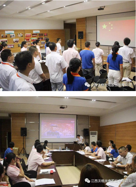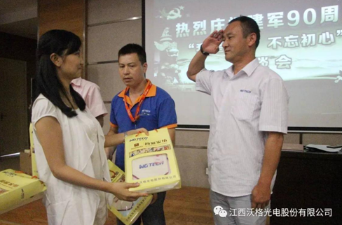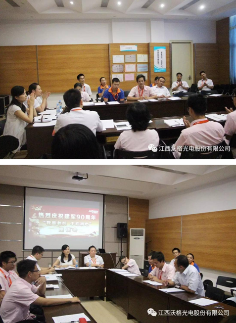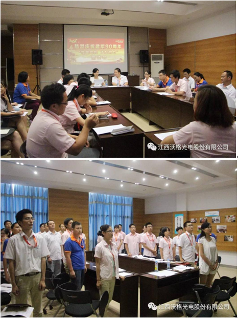 为了纪念“八一”建军节,庆祝中国人民解放军建军90周年,进一步提升沃格光电队伍凝聚力和向心力,7月31日,沃格光电开展“八一”建军节退伍转业军人座谈会,党委班子成员和全体转业军人欢聚一堂,唱国歌、回忆军旅生活、共话观看《建军90周年阅兵》剪影观后感。