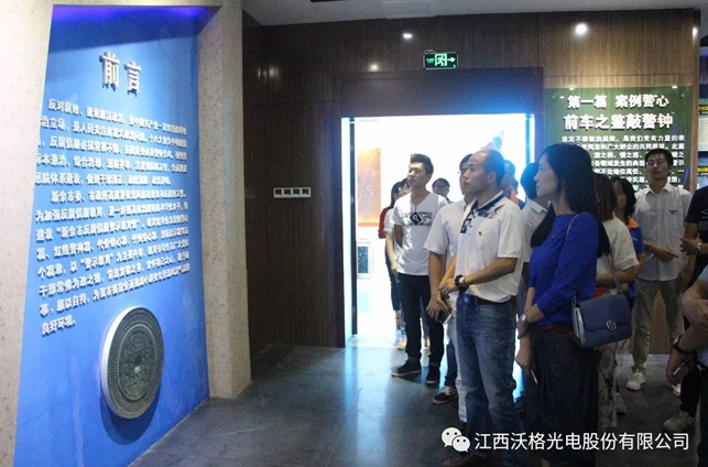 参观结束后,大家一致表示思想上深受启发,在今后要更加注重廉洁自律,更加坚定理想信念,自觉筑牢思想道德和党纪国法两道防线,不断提高拒腐防变和抵御风险的能力,在各自的工作岗位上,用实际行动树立沃格人的良好形象,不断自重、自省、自警、自励。