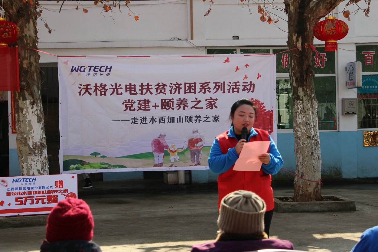 2018年开年,沃格光电结合全市“党建+颐养之家”工作,开展扶贫济困系列活动——走进水西加山颐养之家。举行“迎新年,送温暖”文艺演出,和颐养之家的老人们共度了一段愉快的午后时光。