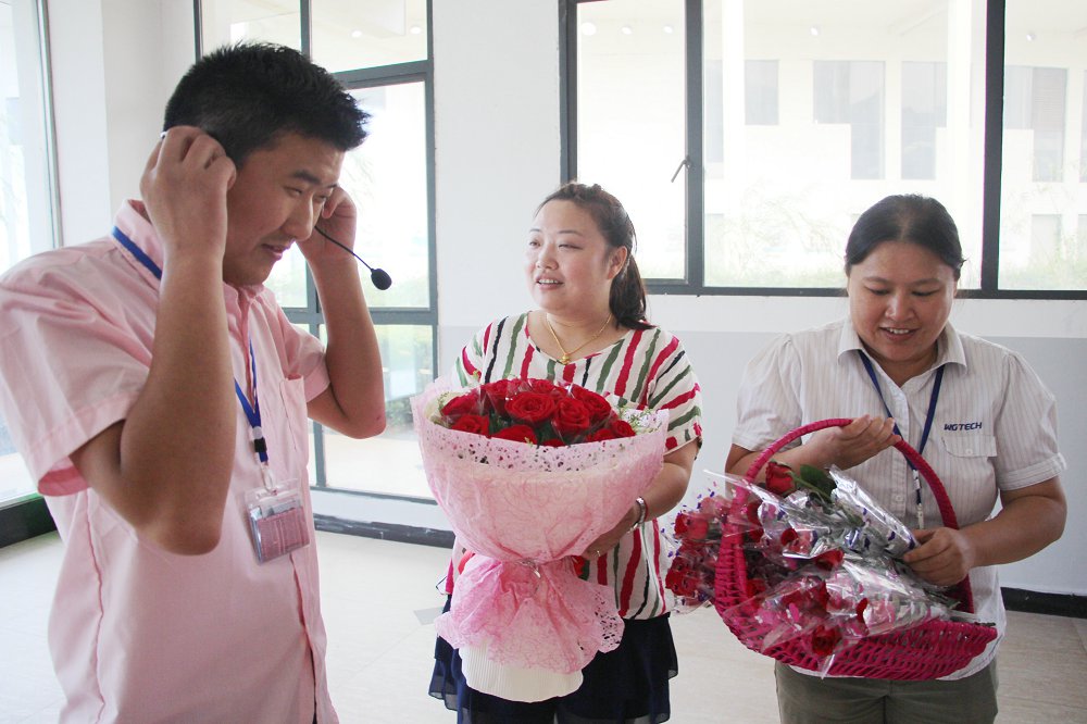 浪漫七夕,有爱大声说出来 发布时间:2015-09-06 七夕被称为中国的”情人节",在这个古老而又浪漫的节日来临之际,我司举办了“有爱大声说出来“的活动。 为使得活动更有气氛与活力,公司准备了糖果及百余支鲜花,员工只要在食堂,当着手提鲜花的人,大声对某个人说我爱你,就可以获得一支玫瑰花和些许糖果。 中午,lisa手提鲜花出现在食堂,大家惊喜万分,蜂拥而上的领取玫瑰花和糖果,大声欢快的说出“我爱你”、“谢谢你”等暖心话语,更有员工手捧一大束玫瑰与女友真情告白,分享爱的甜蜜。活动现场高潮迭起、温馨浪漫。在这样一个充满爱的日子里,让我们拥有了美丽心情。