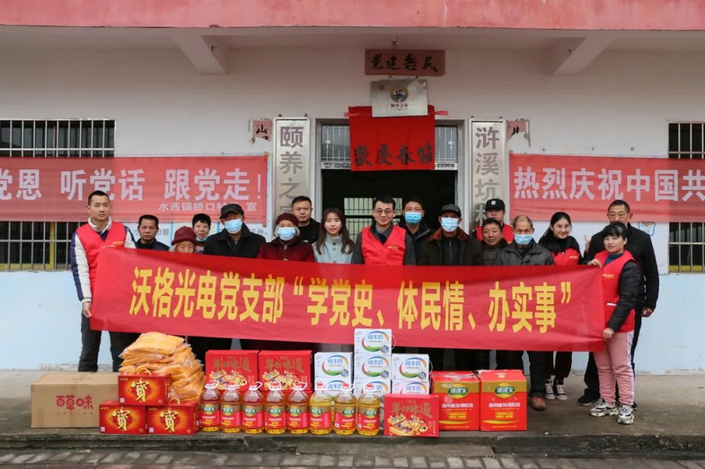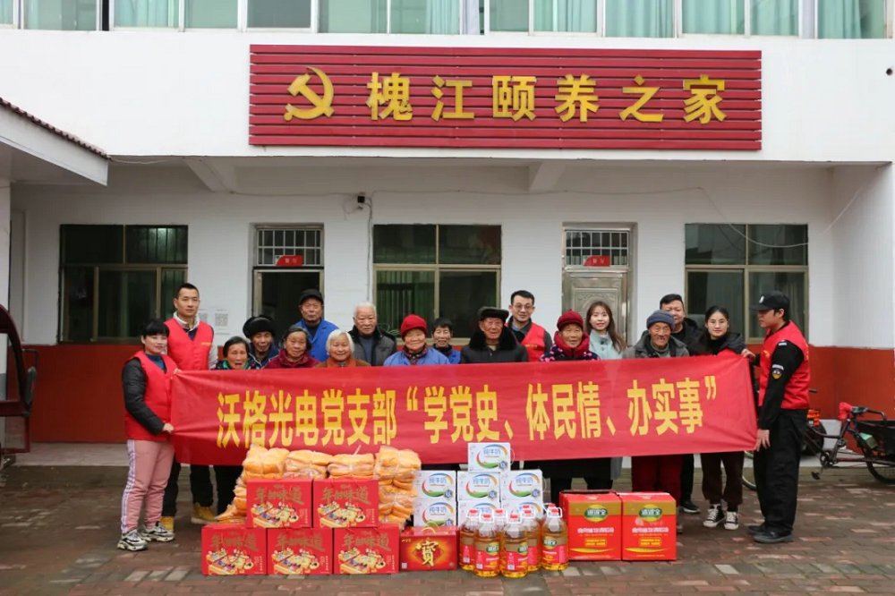 2022年1月26日,为了帮扶颐养之家老年群体改善生活,共同庆祝喜气洋洋的虎年新年,沃格光电党支部赶赴新余市水西周边10家颐养之家,送去新年的物资福利及真挚祝福。