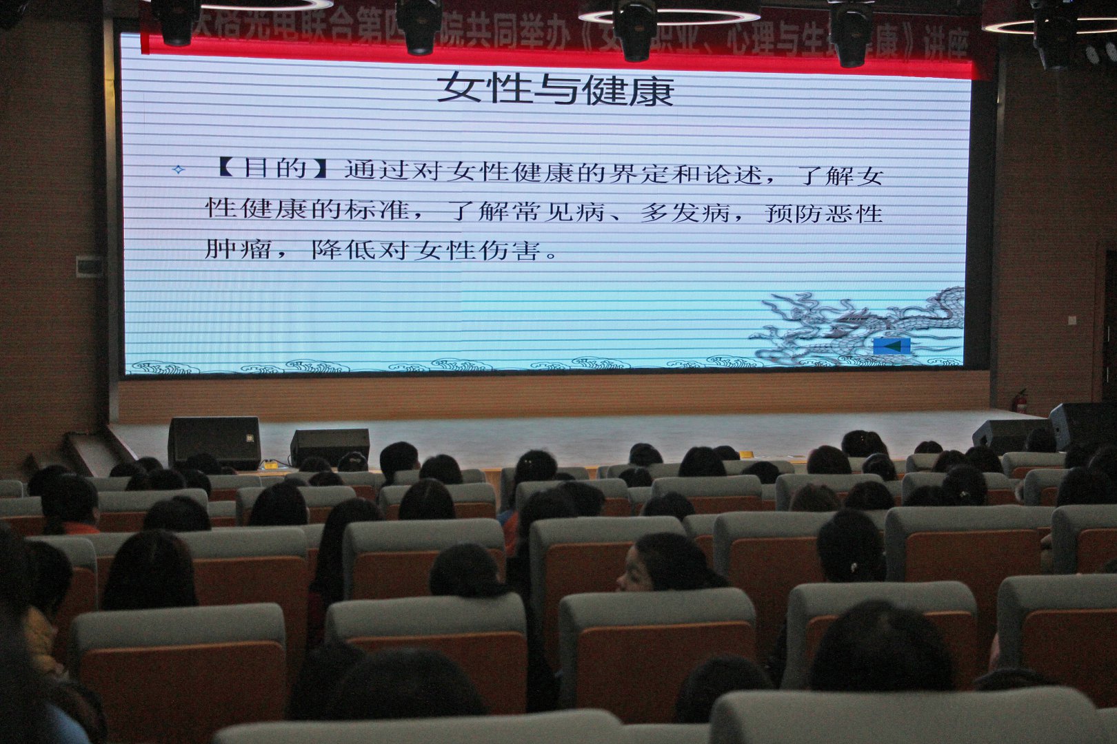 为提高广大女职工的女性健康知识水平,增强自我保健意识,关爱女性,关注健康,3月8日上午,公司邀请市第四医院刘主任为公司女职工开展关爱女性职业、心理与生理健康知识讲座活动。公司300多名女职工参加了此次讲座。