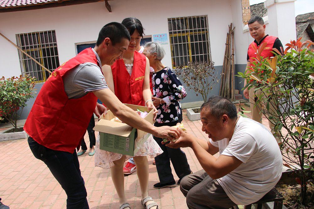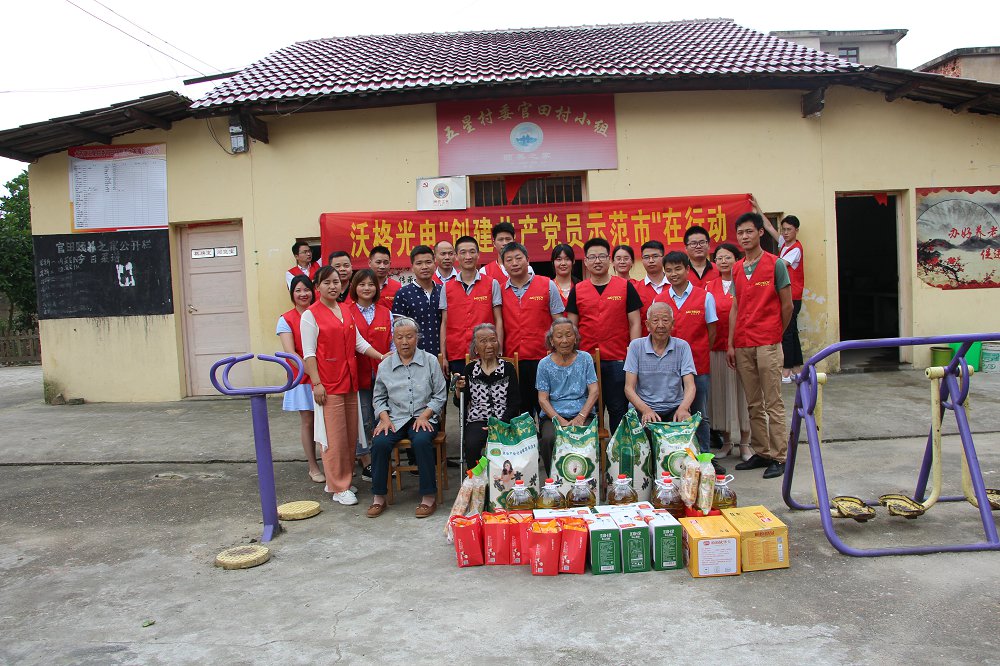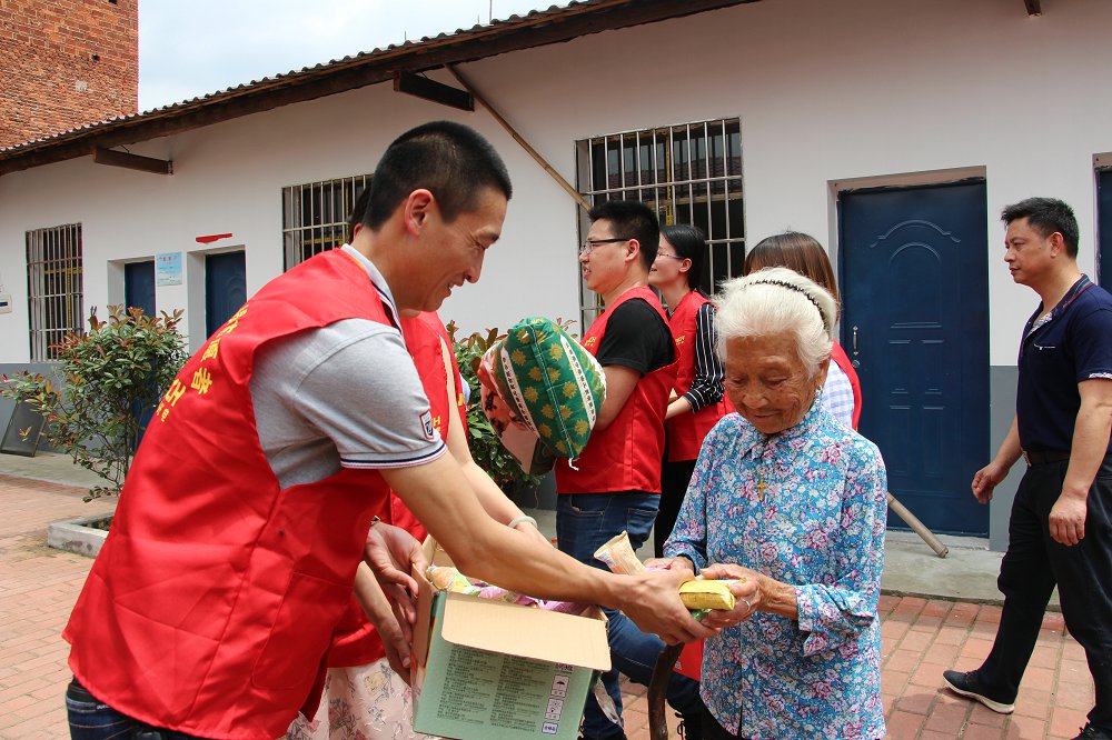 学习讨论后,公司党员及志愿者驱车前往水西镇五星村委和潭隅村委颐养之家,给颐养之家的老人们送去了大米、食用油、粽子、牛奶糕点等端午节慰问品,让颐养之家的老人们能愉快地过上一个温馨、快乐的节日。