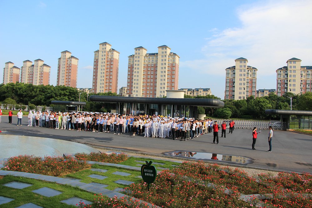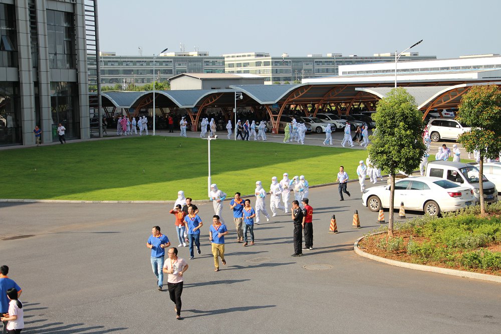 2019年6与14日16:30火灾警报器响起,消防广播宣导大家进行疏散,我司各部门紧急救援组织成员立即引导大家在最近的安全出口疏散,并在4分58秒内全厂508人全部安全到达集合地点。