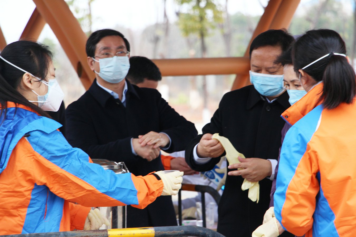 在公司副总经理康志华的陪同下,谢主席一行通过公司“人员进厂防疫检测通道”,实地体验了测温、手部消毒、领防护手套与口罩、饮中药汤饮、鞋底消毒等一系列的安全保障措施,详细了解了公司人员入厂第一道防疫关口的具体情况。