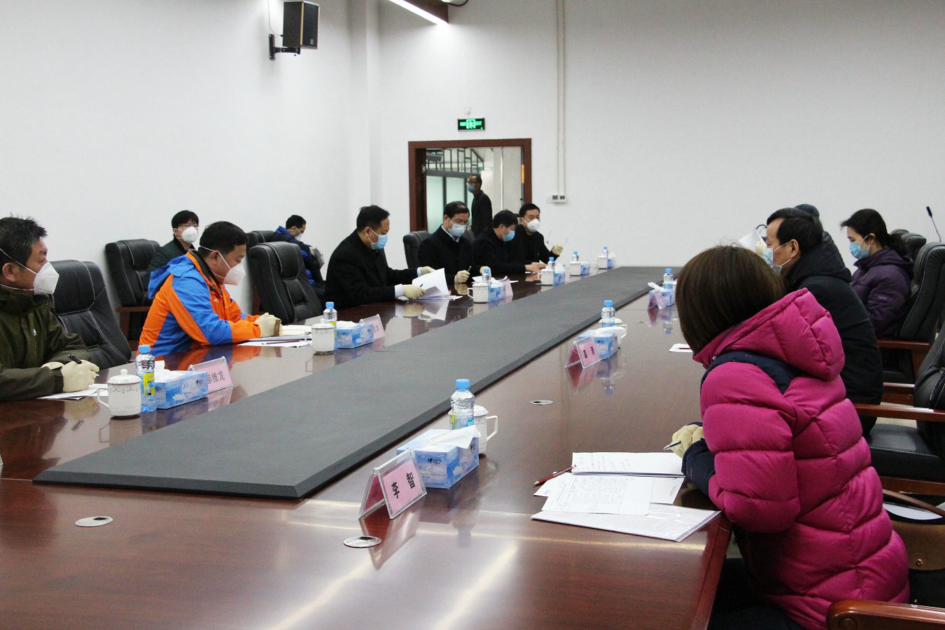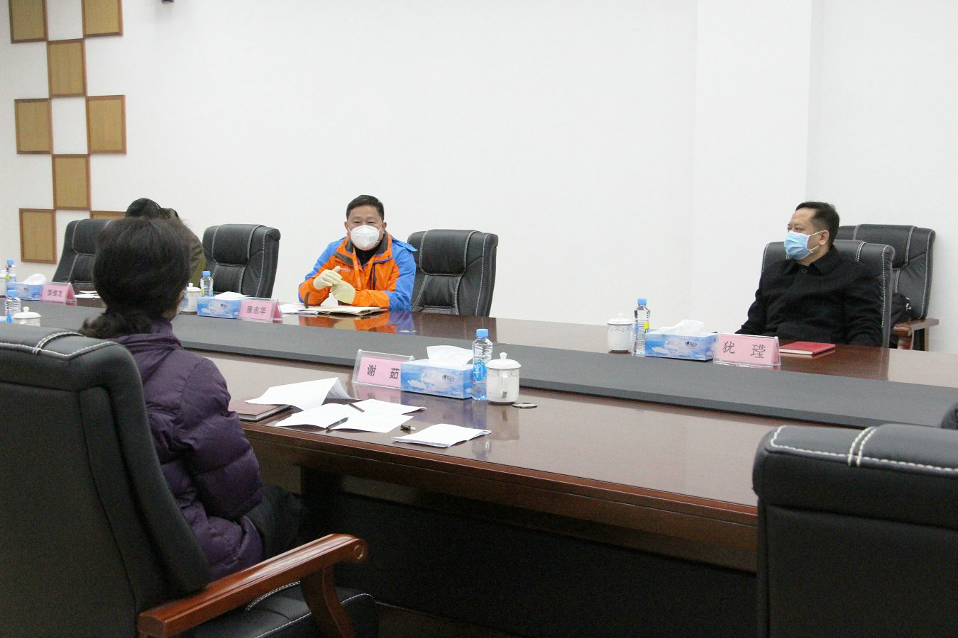 随后,谢主席一行与公司相关领导在大会议室召开了复工防疫座谈会。会上,康总汇报了公司复工生产和防疫措施的落实情况与实际效果,谢主席对公司防疫复工工作给予了充分肯定。谢主席在充分了解了公司自复工生产以来的相关问题后,对公司下一步的生产与防疫工作做出了重要指示。