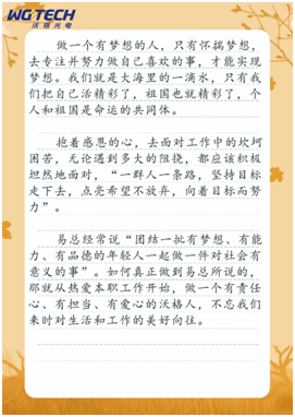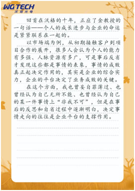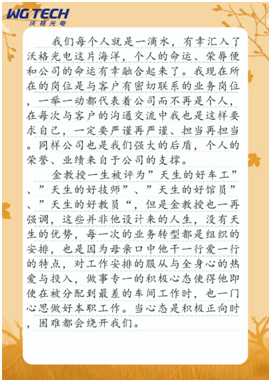 听培训 | 金一南教授视频学习有感 发布时间:2020-04-27 一次视频讲座,公司50余名管理者围绕《我和我的祖国》进行学习讨论,听金教授的亲身经历、真知灼见,那些珍贵的史料、经典的案例、鲜活的语言润化进人心,仿如醍醐灌顶,收益颇深。本期节选部分优秀心得报告,共享共益。