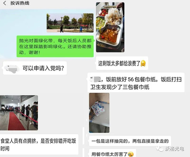 或许,你没有她的经历,无法体会她对沃格的情谊,但其实,你我身边有许多诸如她这般“视沃格为家”的人。看到了缺漏向上反映,却在部门内部沟通不畅,提出了好建议,却久未得到重视与回复,反馈无门好建议被搁沉,不愤投诉却饱受排挤指点,该关注的事件都石沉大海,该表扬的积极性都日渐消磨......别担心,这些,在沃格,都不容许发生。因为,公司开放了“投诉建议平台”,这些无名英雄们所传递的每一条信息,公司都有认真记录,每一条真切建议与投诉,公司都有及时处理。
