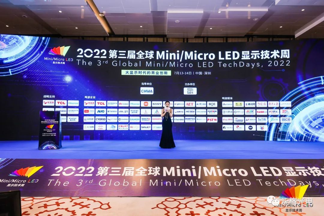 由中国电子视像行业协会Mini/Micro LED显示产业分会(CMMA)指导,SciLinks Group主办的“2022第三届全球Mini/Micro LED显示技术周(Global Mini/Micro LED TechDays)”于 2022年7月13-14日在深圳机场凯悦酒店隆重举办。沃格光电副总经理严冰波受邀参加本次显示交流会议,与同行业友商共同交流技术意见,展现“大显示时代下的商业创新”。