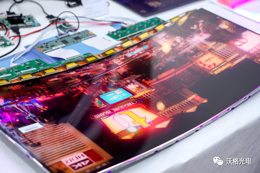 沃格集团在今年继续完善Mini LED玻璃基产业布局,先后成立江西德虹显示技术有限公司、湖北通格微电路科技有限公司和湖北汇晨电子有限公司,致力推动Mini LED玻璃基板、显示灯板及封装载板的量产工作;技术上,在中尺寸Mini LED产品上也有了重大突破,研发部门于近期成功点亮34寸Mini LED玻璃基曲面背光,玻璃基厚度达0.55mm,弧度更自然,极大降低贴合压力。