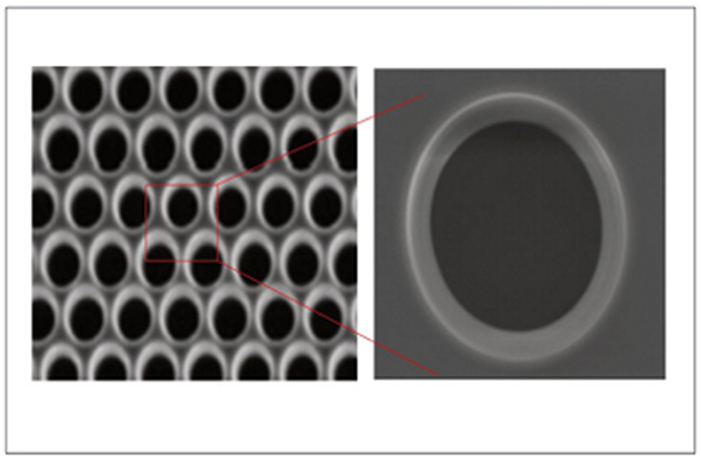 玻璃基板两面分别制备导电线路,通过微米级巨量通孔技术实现不同导电层的电气连接。玻璃基巨量微米级通孔最小孔径可至10um。